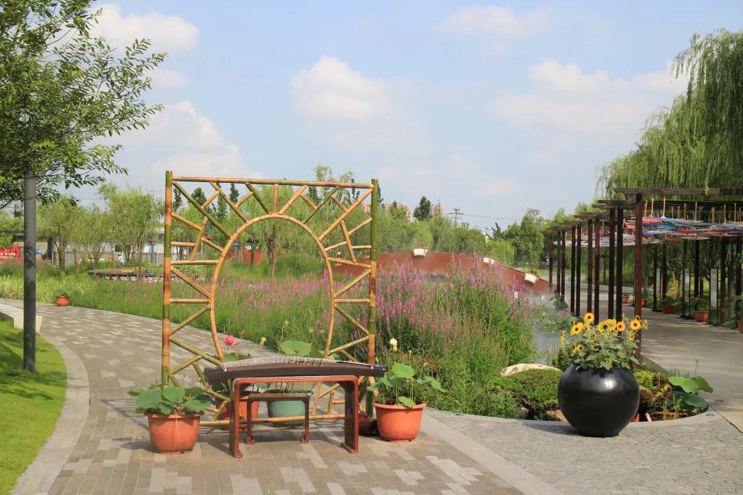 垂柳岛边上放了一架古筝,琴声清脆悦耳,游客可以体验一把现场演奏的乐趣。