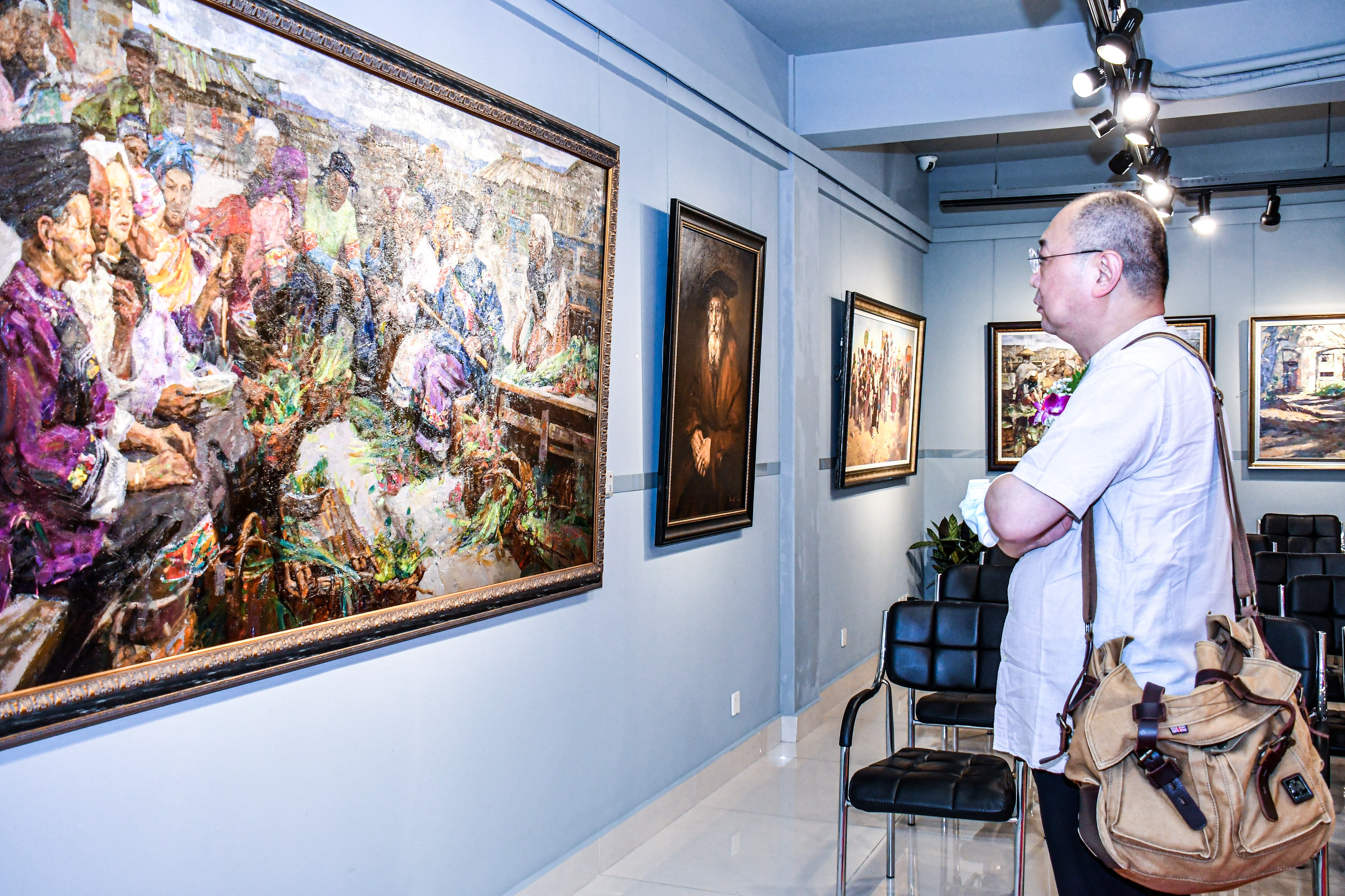 展览的作品中,有展现少数民族生活内容的《西藏宗教游行》《湘西农贸市场》等,也有展现西方风情的《斗牛士》《流浪者》等,还有木板油画《白色教堂》《云南村庄》等。作品从风景、建筑、人物等创作角度,为观众带来了视觉和心灵的享受。“我从中感觉到了作品的质感和温度, 最喜欢素描作品,人物的眼神是我会花更多的时间去观察和琢磨的。”观众王女士说。