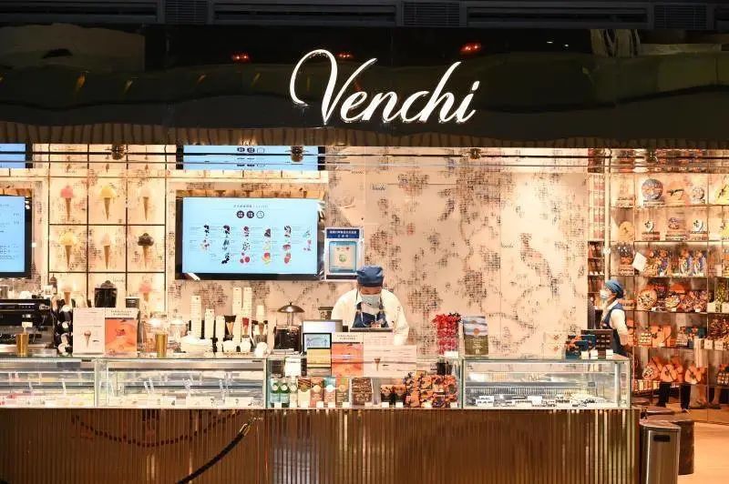 另一边的Venchi巧克力始创于1878年,为突出机场店的与众不同,推出了仅在虹桥机场售卖的“旅行系列”巧克力礼盒,并为旅客提供50余款不同口味散装巧克力、30余款精选巧克力礼盒和16款深受公众喜欢的冰淇淋。