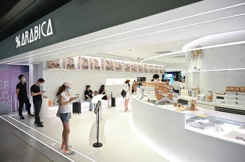 今年5月,日本网红咖啡% Arabica全球机场首店、意大利百年巧克力品牌Venchi亚洲机场首店相继入驻上海虹桥机场2号航站楼。记者在现场看到,创始于日本京都的% Arabica咖啡虹桥机场店铺同样延续了其纯白极简的装修风格,同步出售其较受欢迎的西班牙拿铁和新风味黑巧拿铁。