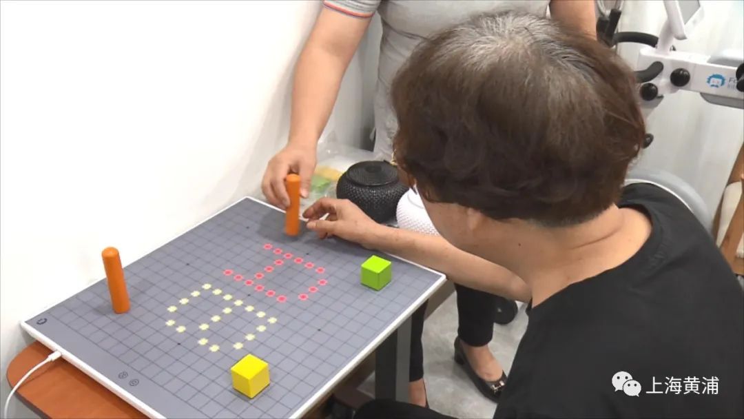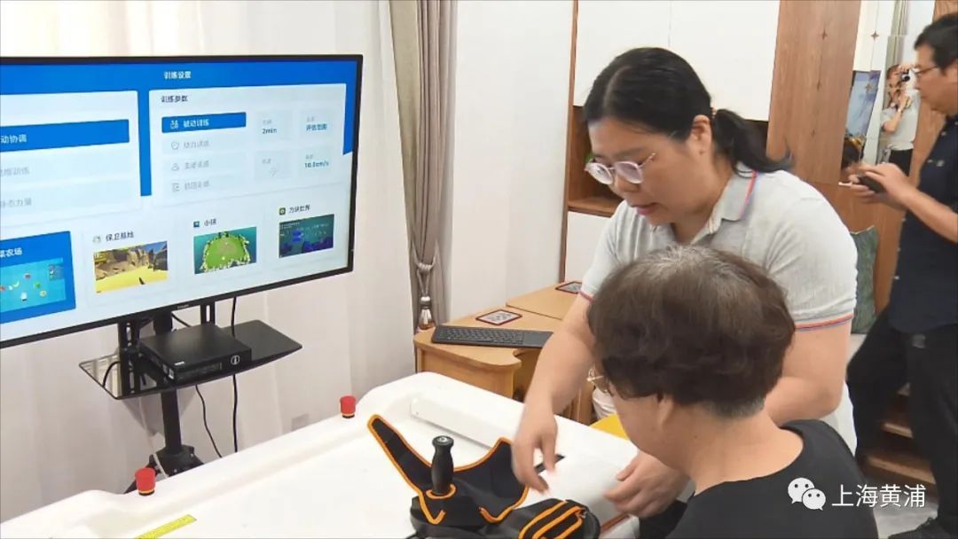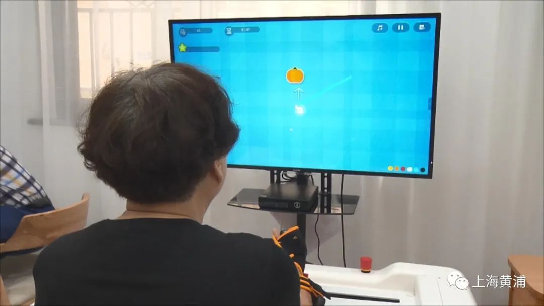 居民夏阿姨在工作人员的指导下体验了“上肢康复机器人”,选择被动模式,机器会带动手臂进行游戏的完成,这个模式尤其适合手部手上需要康复训练的人群,对于手部功能正常的人来说,可以选择一个阻力模式,运用自身的力量对抗机器带来的阻力,从而完成游戏,看似简单,却能够促进运动感觉功能的整合,促进脑功能的重组,从而提升肢体运动控制和功能。