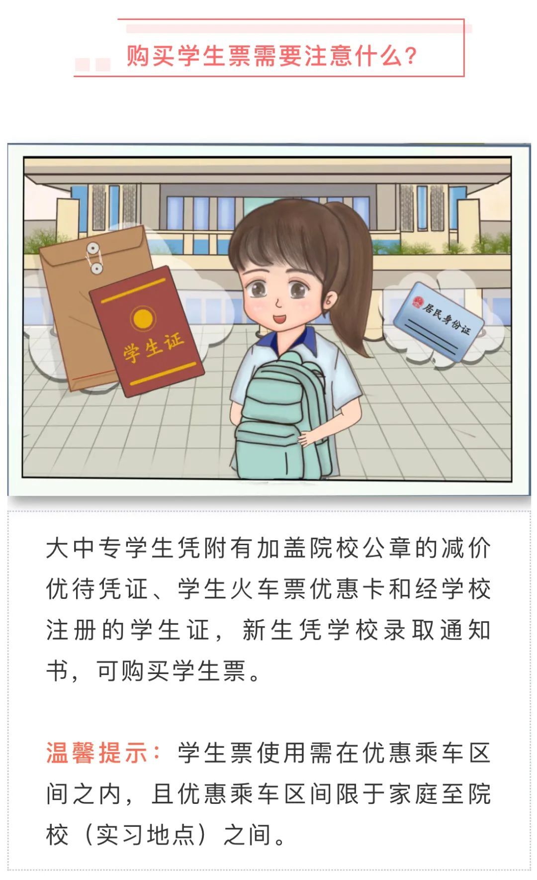 怎么购买学生票?购买学生票需要注意什么?带老人旅游怎么出行最方便?怎么才能买到靠窗的座位?来看国铁集团发布的出行攻略↓
