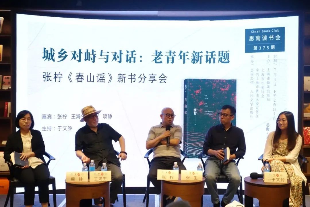 7月4日下午,北京师范大学教授张柠携其最新长篇小说《春山谣》来到思南读书会第375期现场,与同济大学教授张生、王鸿生,青年评论家项静一起探讨城市文化和乡村文化的冲撞与融合。活动由人民文学出版社编辑于文舲主持。