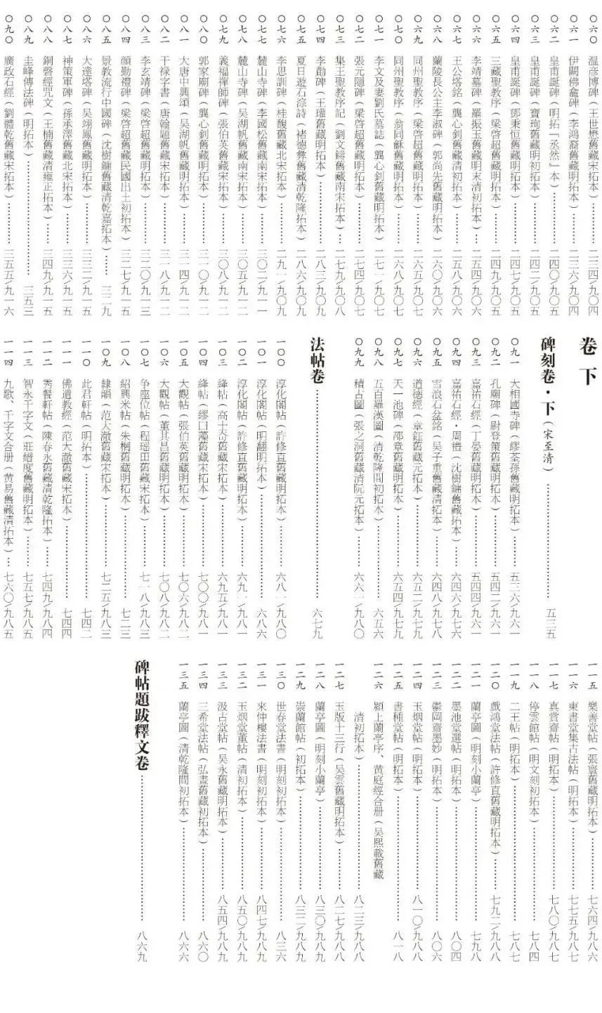 全书分为上下两册两函,三大部分:碑刻卷、法帖卷、题跋释文卷。
