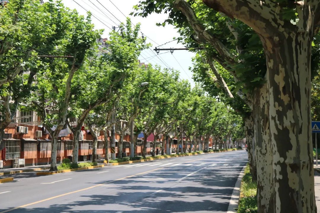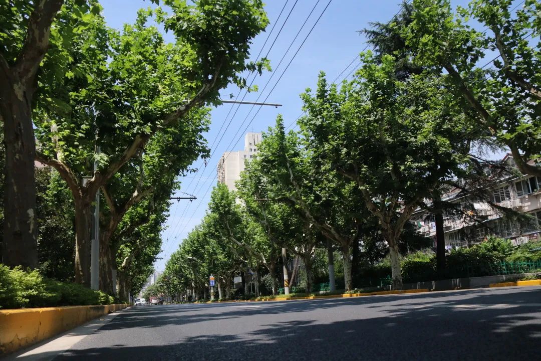 政澄路(殷行路-国泓路)市级林荫道,两侧朴树高大舒展,遮光蔽日。