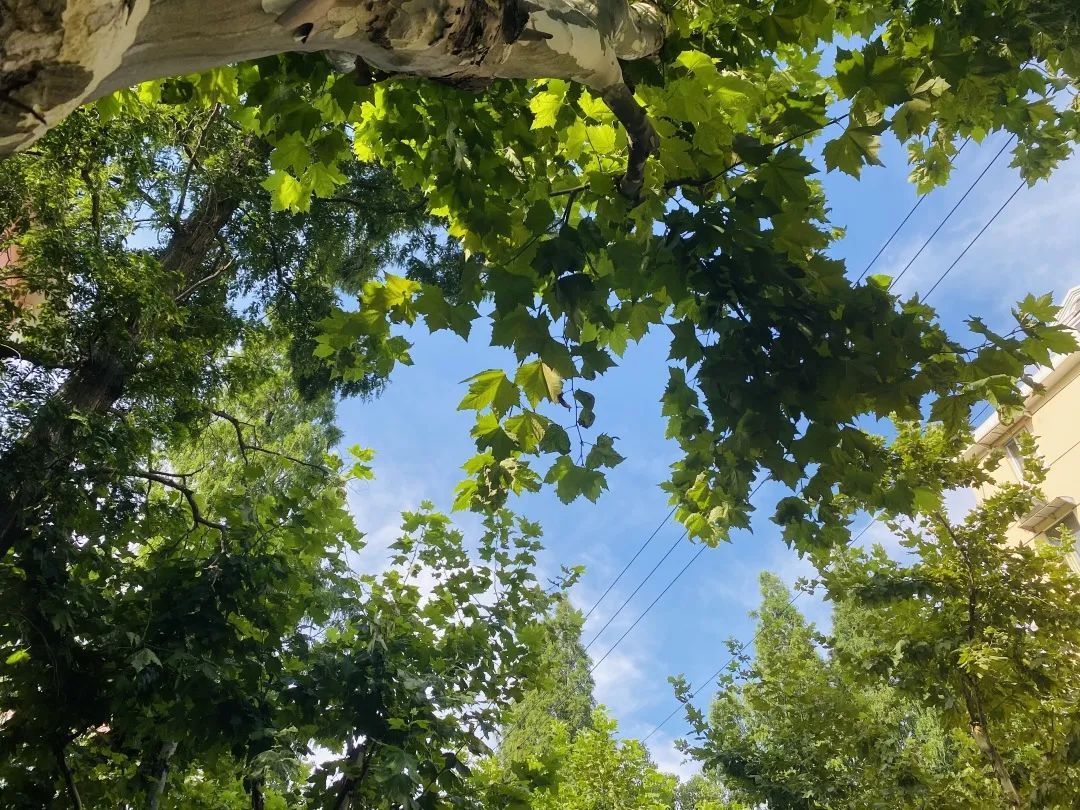 沙岗路(佳木斯路-国顺东路)市级林荫道,两侧的悬铃木枝繁叶茂,挡住盛夏阳光。