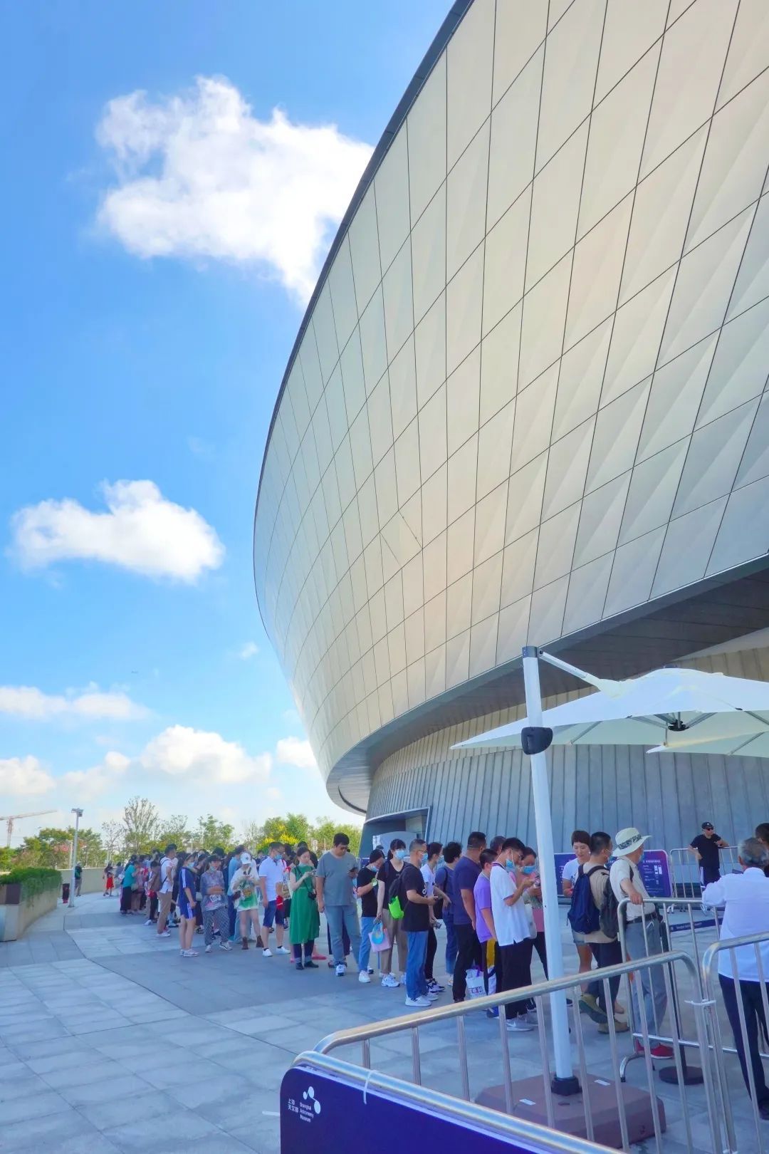 面对高温天气,如何服务好6000位观众?记者在现场看到,上海天文馆已提前备案,在保障防疫安全下在入口处前设立了入馆预检通道,配置了引导人员,让观众准备健康码,在通道内完成测温、行李安检等。