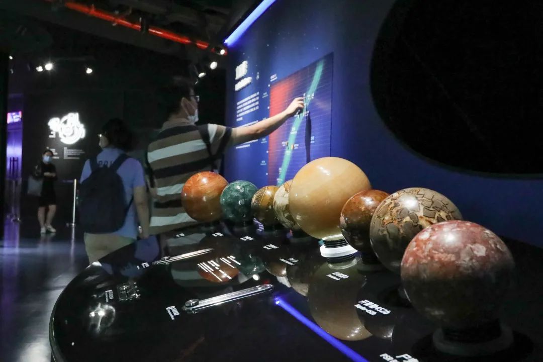 “身临其境”,是这座全球建筑面积最大的天文馆开放首日受到的最多评价。在300余件展品中,原创比例高达85%,互动展品占比50%以上。