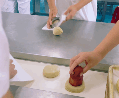 手工揉面,捏团包馅,脱模盖章……走进功德林生产车间,果仁的香味弥漫其中,数十位工人身着白色工作服,正忙碌地制作着开炉月饼。创立于1922年的功德林,已是经营了99年的老字号了,享有素食鼻祖之称,专做净素菜肴、净素食品,为崇尚素食者提供健康美味,其素食制作技艺现已被列为国家级非物质文化遗产。
