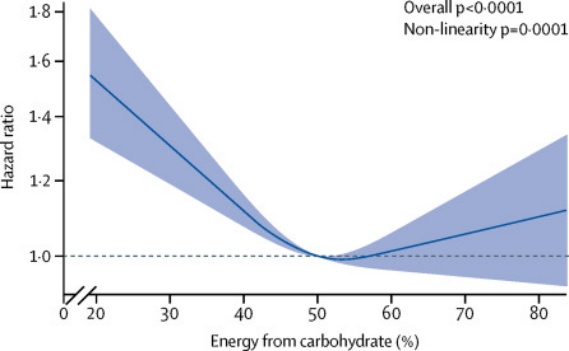 2018年,国际权威期刊《柳叶刀·公共卫生》发表了一项关于膳食中碳水化合物摄入与预期寿命关系的大样本人群前瞻性队列研究,结果发现两者关系呈“U“字型曲线。