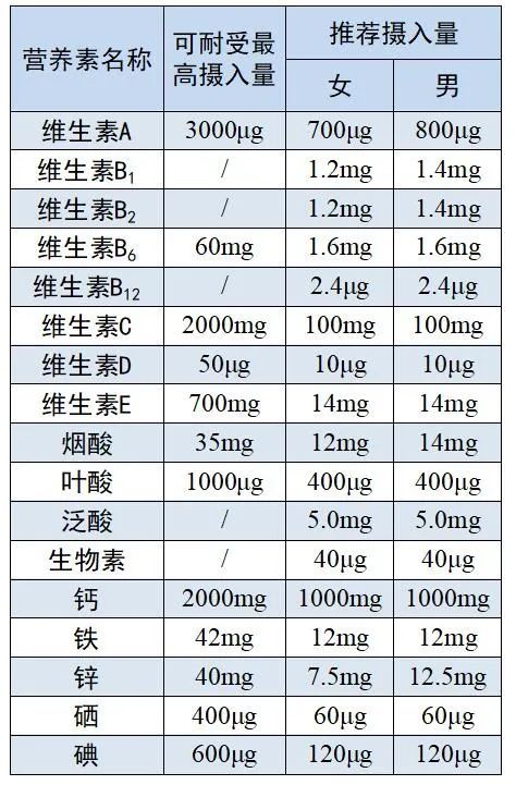 需要注意的是,在大多数情况下,人体每日摄入的营养素包括膳食、强化食物(保健品)和添加剂等各种来源的总和。