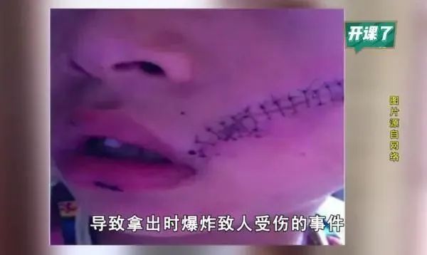 因气体喷发力度大,易拉罐拉环直接划到孩子脸上,伤口直接穿透脸腮。最后,男孩在医院缝了38针!