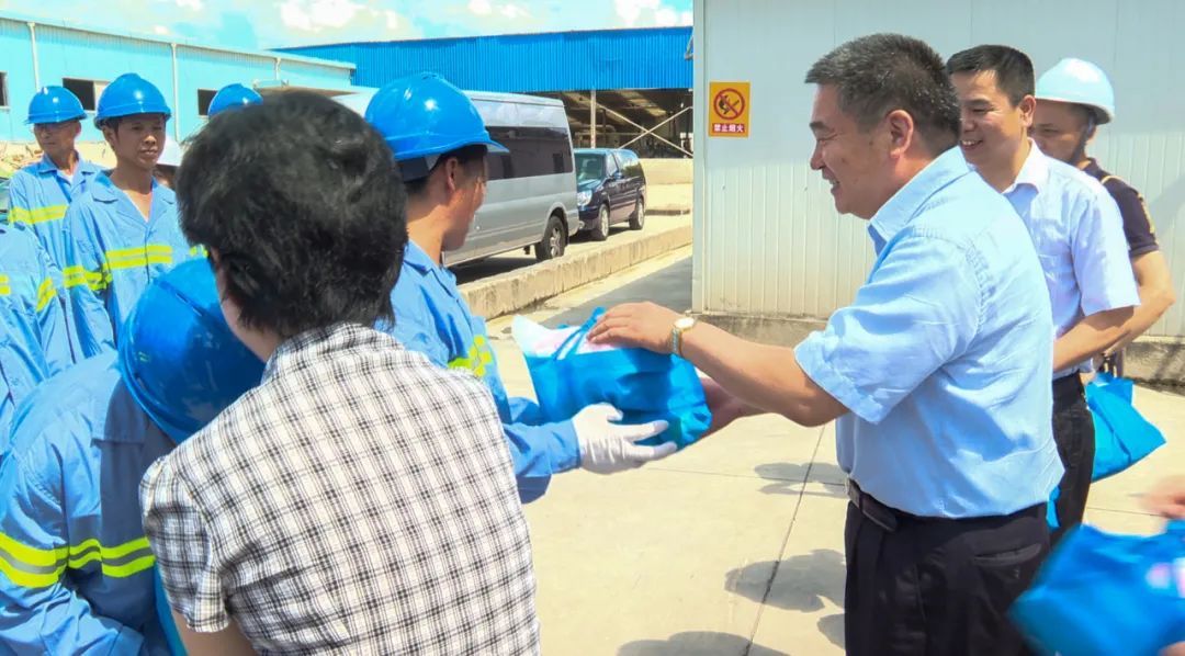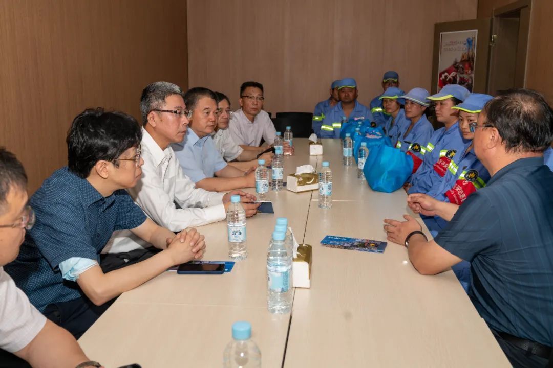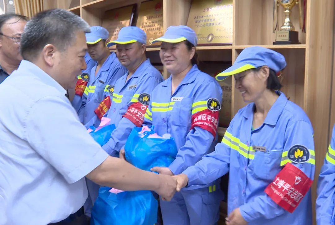随后,邓建平一行又来到上海振宁清洁服务有限公司,对一线环卫职工代表进行了高温慰问,感谢大家为城市的美丽清洁和居住区的优美环境付出的辛劳汗水,并叮嘱大家高温酷暑期间一定要注意安全生产,落实好各项防暑降温措施。