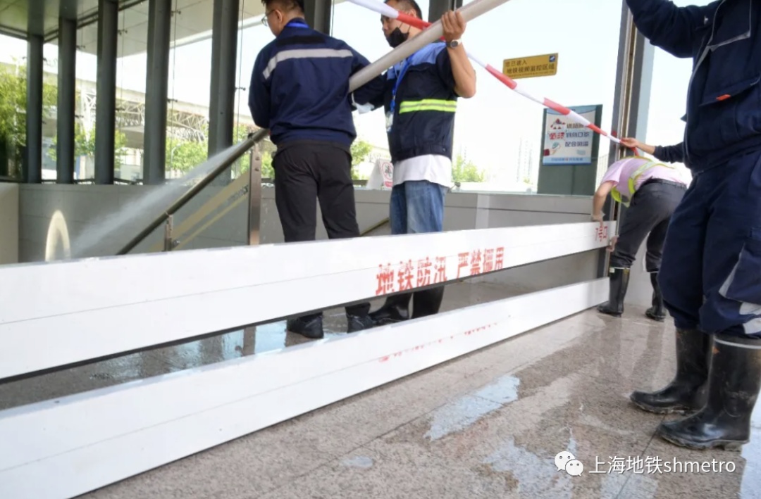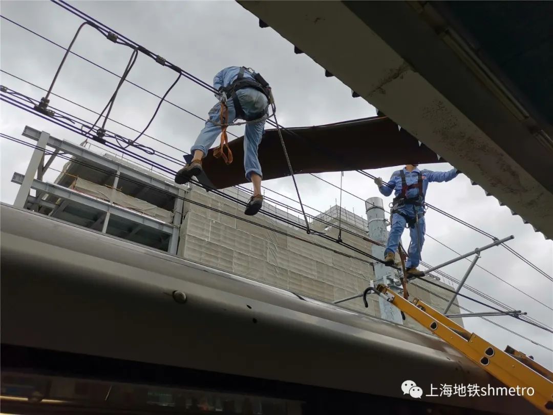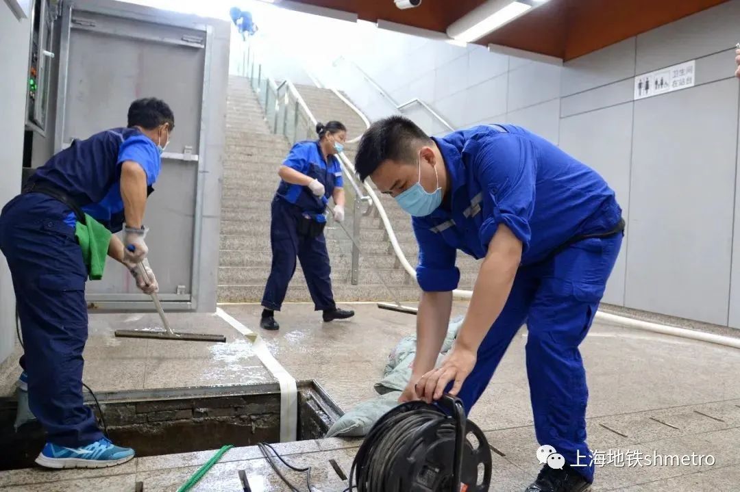 上海地铁在台风来临前抓紧组织力量对车站、基地、线路附属设施和悬挂物紧固状态开展检查和巡视工作,防止因物体脱落、倾倒导致设施侵限、高空坠物、人员伤害事件的发生。