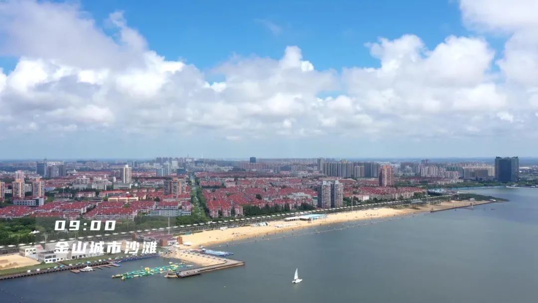 蓝天白云将海边映衬出了别样颜色,朵朵云彩在海上铺散开来,时而团在一起,好像海上的一块块棉花糖。