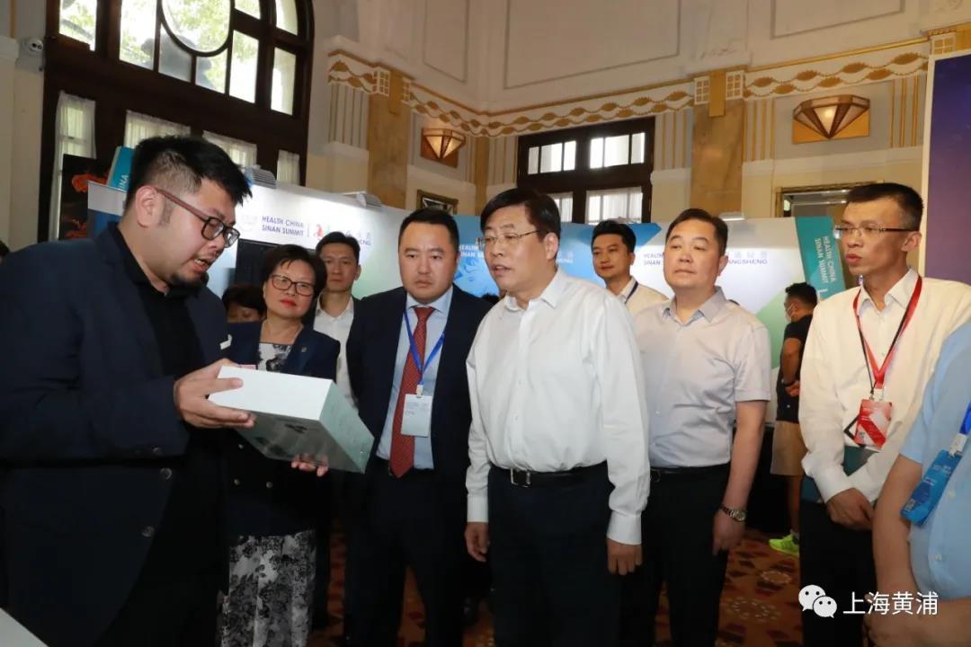 大会开始前,领导和来宾参观体验了大健康项目产品。