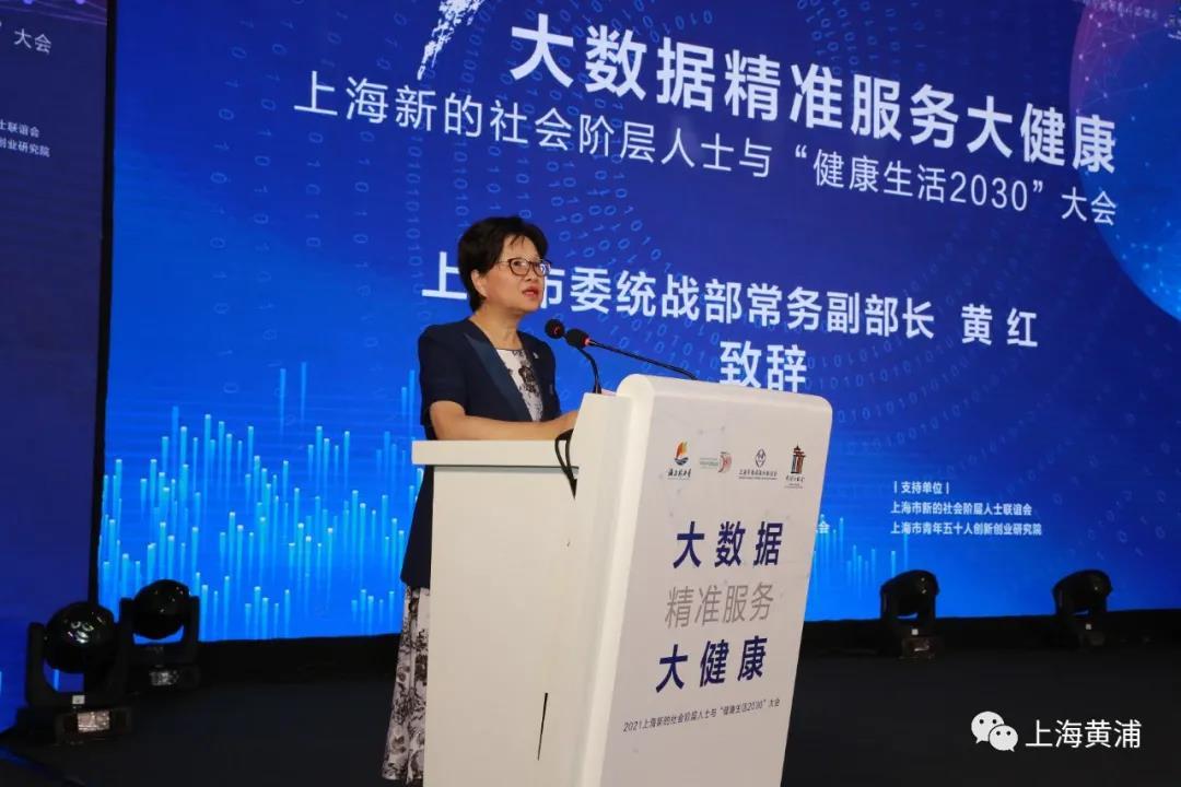 黄红在讲话中指出,本次大会是全市新的社会阶层人士服务大健康战略布局的持续探索实践,是贯彻落实《“健康中国2030”规划纲要》、加快推进上海大健康产业发展的具体举措,也是上海统一战线助力“健康上海”的一次盛。她提出三点希望:要在服务国家战略发展中凝聚思想共识。新的社会阶层人士工作要始终与上海改革发展同频共振,把统战力量转化为服务国家战略的重要助推力;要在推进产业协同中强化资源联动。要将大会打造成一个共商发展大计、共享合作成果的重要平台,为大健康产业的创新发展创造更多合作机遇;要在打造人才高地中汇聚智慧力量。鼓励青年人才引入更多新业态、新技术、新模式,展示更多科技成果,围绕高质量发展主题提出更多青年视角的思考和建议。