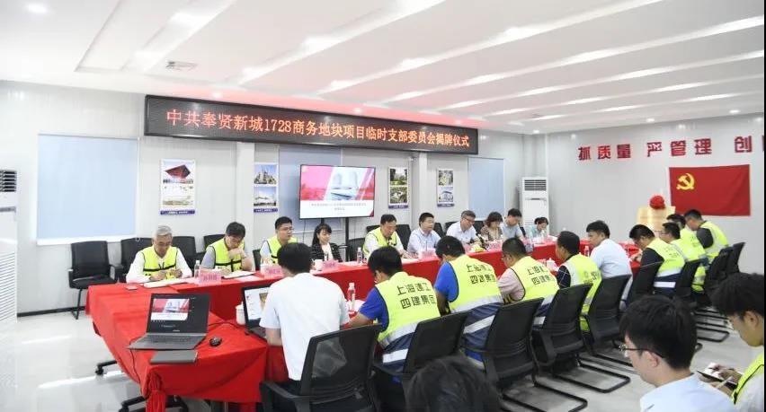 奉贤新城1728商务地块项目临时党支部由管理、总承包、专业分包、设计、监理等各参建方党员组成,现有9名党员。临时党支部将树立“一个党员一面旗帜,一个支部一个堡垒”,整合各方资源,将来自不同单位的不同利益群体“拧成一股绳、心往一处想、劲往一处使”,把临时党支部建设成为政治素质好、专业技能好、团结协作好、作风形象好的战斗堡垒,使党支部成为解决问题与推进项目建设的平台,为顺利推进项目建设保驾护航。