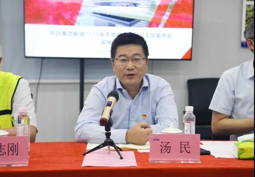 奉贤新城公司党委书记、董事长汤民指出,公司党委提出了通过“创建一流党建,引领一流人才、一流发展、一流作风、一流品牌”,持续提升党组织的组织力、凝聚力、战斗力。他提出四点希望:一是团结,1728商务地块项目作为区重大工程,各参建单位要保持团结一致、凝心聚力;二是规范,要认认真真、脚踏实地打造精品项目;三是优质,要加强廉政建设,做到工程优质、人员优秀;四是融合,希望建工集团按照“四名工程”标准,积极参与服务奉贤新城发展大局。他强调,临时党支部要不忘初心、勇担使命,发扬“三牛精神”攻坚克难,为奋力创造“奉贤美、奉贤强”新高峰新奇迹增光添彩。