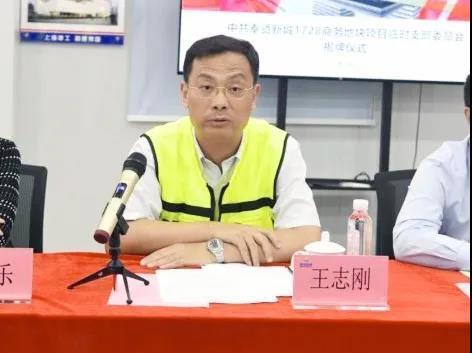 上海建工集团副总裁王志刚出席揭牌仪式并讲话,他要求,一是坚持政治引领,凝聚各方力量推进工程建设;二是提升创优意识,确保工程平稳受控;三是优化建设环境,营造干事创业的良好氛围;四是树牢精品意识,展示企业良好形象。