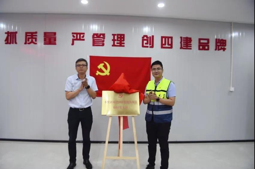 上海建工四建集团党委委员、工会主席倪晓峻和奉贤新城公司党委副书记、工会主席秦文军共同为临时党支部揭牌。临时党支部书记秦丽军作表态发言。