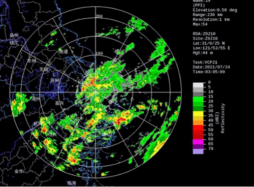 受台风“烟花”外围影响,本区出现阵雨,统计24日00时~10时累积雨量,最大雨量出现在江川街道50.3mm,最大小时雨强出现在虹桥街道28.1mm(03时28分~04时28分)。陆地最大阵风已达10级(吴泾镇24.7m/s)。