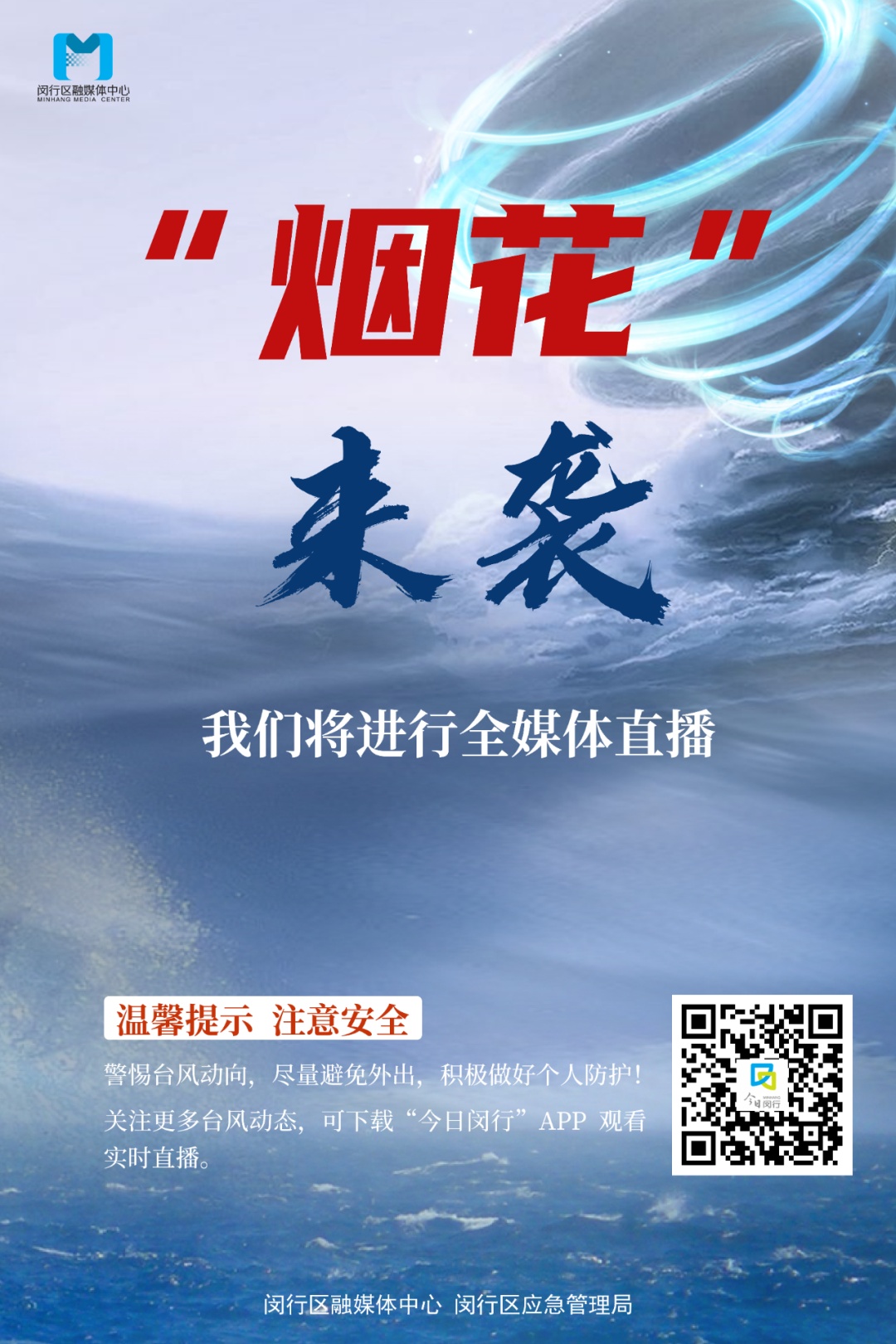 目前, “烟花”外围螺旋雨带已影响到上海,台风雨一阵阵,风力也有所增大,周六请尽量减少外出。