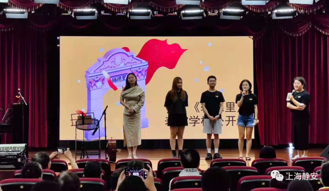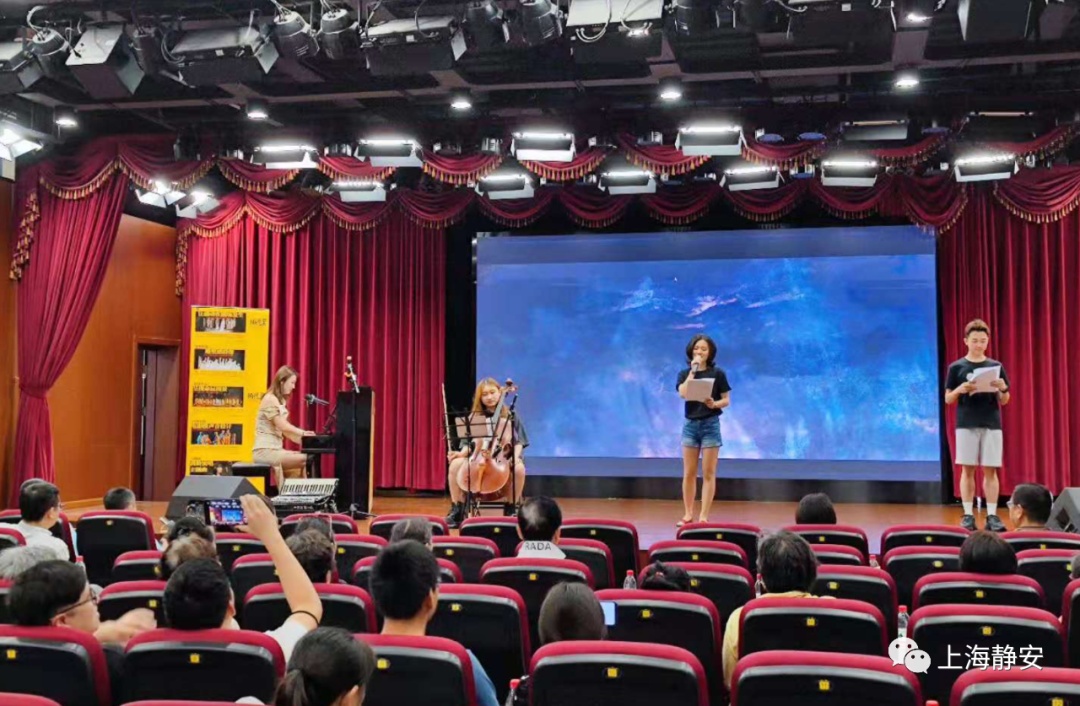 7月23日下午,石门二路街道社区文化活动中心剧场内,伴随着非虚构戏剧《辅德里》主题曲抒情悠扬的歌声缓缓响起,由《辅德里》剧组演职人员演绎、奉献的文艺党课,得到了前来观赏的上百名社区党员和群众的热烈掌声与喝彩。