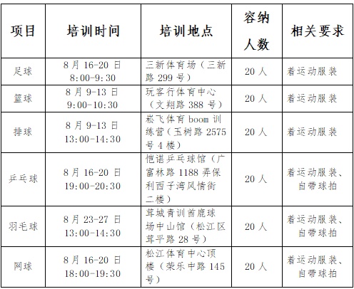 为鼓励松江学子们从暑假“小课堂”走进运动场,更好掌握一项体育运动项目,松江体育将组织一期体育项目公益培训班。