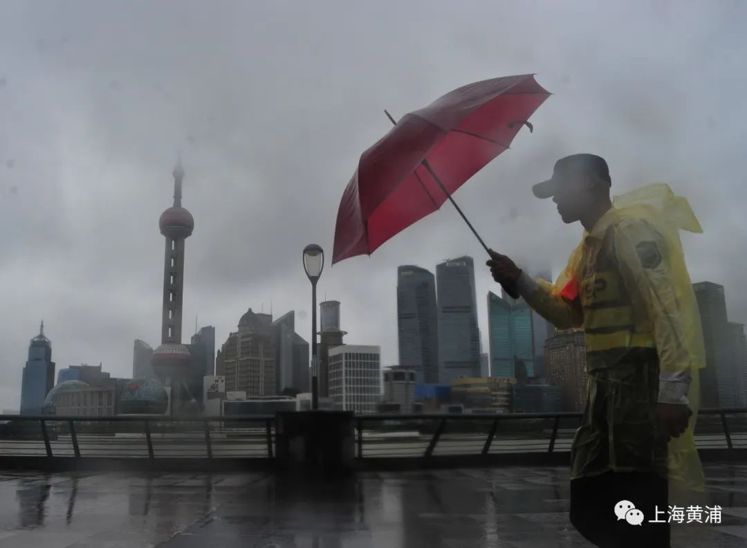 台风烟花外围已经影响上海,为确保游客的安全,外滩风景区观景平台昨起已经临时封闭。今晨,安保人员顶着大风在江堤上巡逻。
