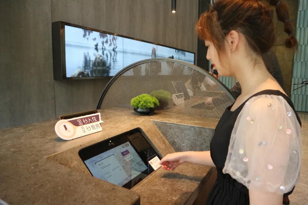 当住客到达酒店后,通过前台“华掌柜”自助一体机,可实现“30秒入住、0秒退房”。如此一来,在大堂的平均等待时间从原先的5分30秒缩减至30秒以内,节约等待时间,提升消费者入住及退房效率。