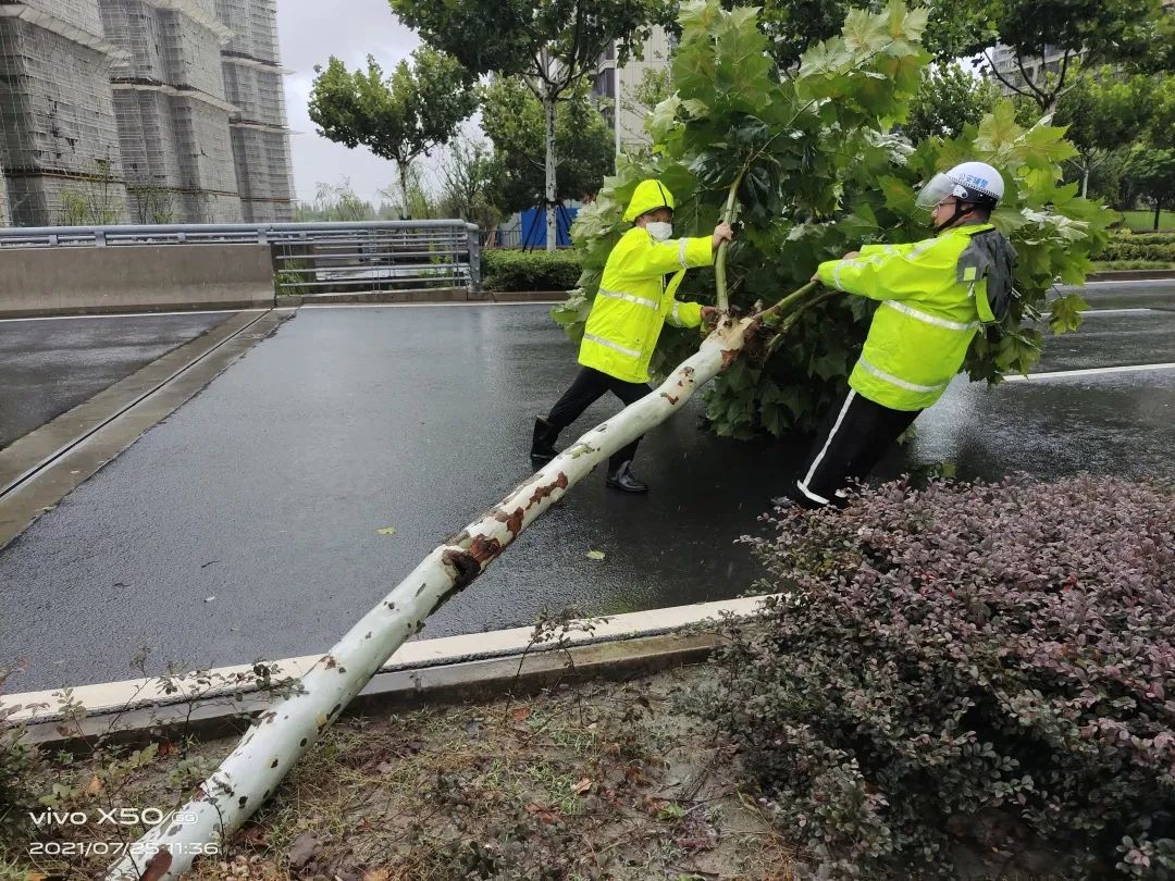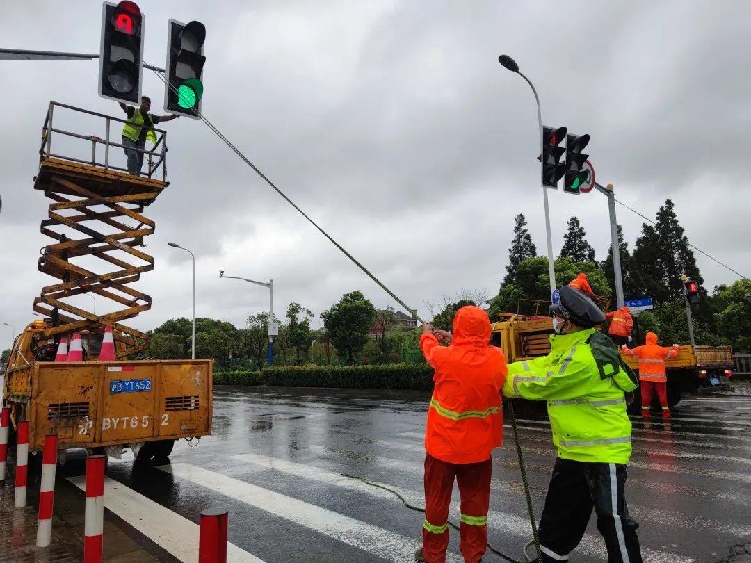盛桥所在开展防汛防台工作时,发现富长路沿线有交通信号灯被大风吹歪,立即联系相关部门进行抢修、协助固定信号灯,同时疏导现场交通。