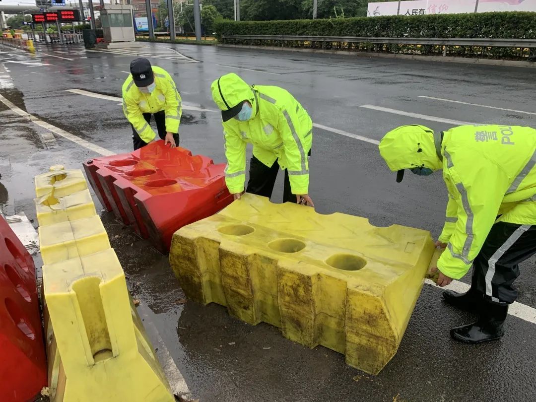 民警对洋桥检查站站内及周边区域进行全面巡视,做好路面隐患清理,并针对路面易积水区域做好先期防范工作。