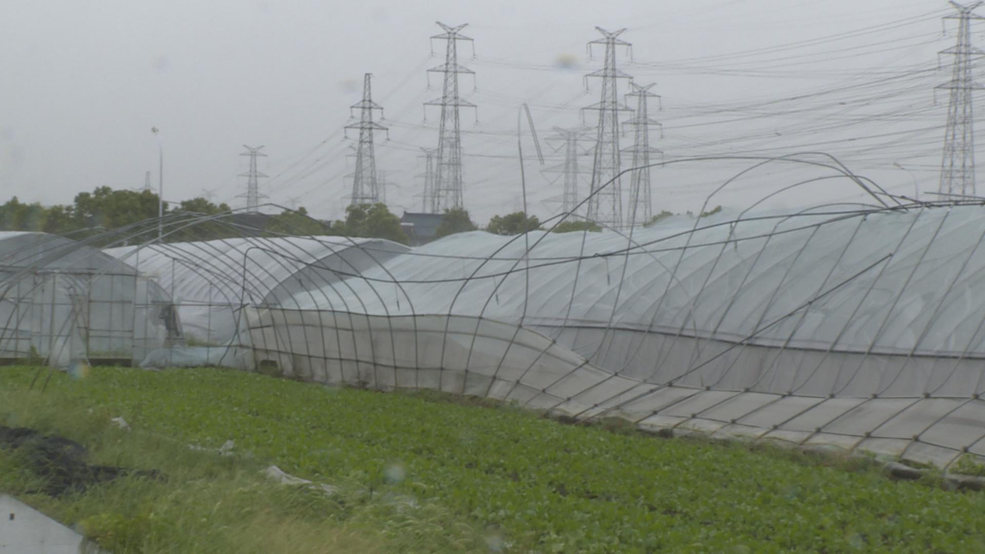 7月25日,台风“烟花”来势汹汹,从中午开始风势雨势明显变大,本地蔬果都受到了不同程度的影响,部分地区出现蔬菜大棚倒塌、果树倒伏的现象。