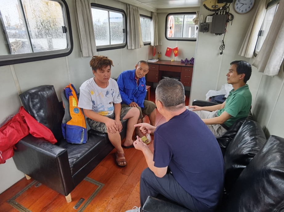 对船长进行防汛防台应急响应工作宣传,了解船民应对台风天气措施,询问避风期间有何需求,告知联络方式,有需要直接联系宝山交通执法大队。对港内避险船舶加强现场宣传,要求加固缆绳,加强值班值守。