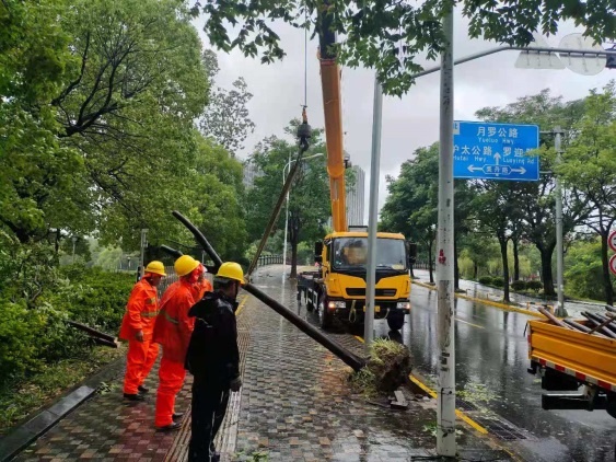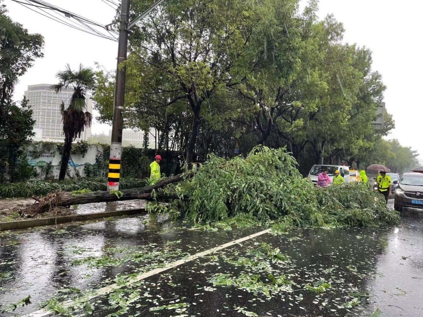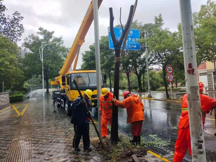 今年第6号台风“烟花”已于25日中午12点30分前后在浙江省舟山普陀沿海登陆,登陆时中心附近最大风力13级(38米/秒)。受其影响,宝山区出现大雨及大风天气,为保障城市运行安全和交通通行,建设和交通人行动起来,在加强值守、巡查基础上,各支应急抢险队伍也奔赴各个突发事故点,开展防汛防台抢险工作。