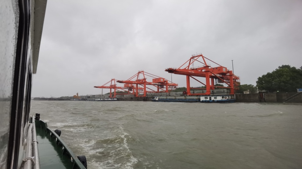对码头开展现场巡查,要求吊机放下吊臂,按照要求固定到位,行车吊归位,24小时安排值班人员,不得随意离港。