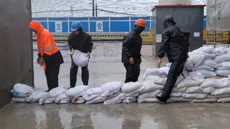 施工现场准备防水沙袋确保施工区域不发生内涝