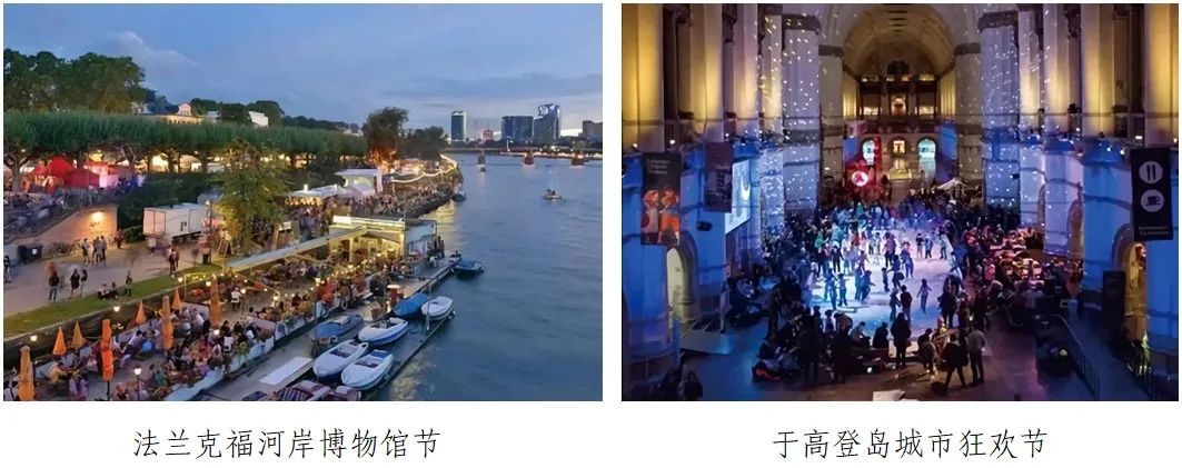 通过组织建筑展、文化艺术节等丰富文化氛围。如纽约博物馆一英里每年组织艺术节活动(限时机动车禁行、博物馆免费开放,街头艺术演出、儿童街头涂鸦)、法兰克福河岸博物馆节(两岸约八公里的线性空间成为了一个大型的艺术文化的共享空间)。