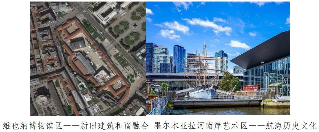 与市民日常文化消费紧密结合的文化集聚。从工业化时代到后工业化时代,一直过渡到目前的移动互联网时代,市民文化消费需求和方式发生了很大的变化。文化活动的外延不段扩大,从单一的、阳春白雪的文化博览延伸到与日常生活、商业活动高度融合的文创、演艺、影视动漫等。文化活动更像是一种生活方式的展现,不断贴近市民。如墨尔本亚拉河南岸原有的文化设施及活动内容,曲高和寡,导致人气不足。通过更新,植入了商业、办公、休闲娱乐功能,吸引了大量人流,艺术设施才重新焕发生机。法兰克福博物馆区、纽约博物馆一英里等通过增加大型节庆活动,免费开放博物馆等手段,让文化活动走下神坛,受到了大众的欢迎。