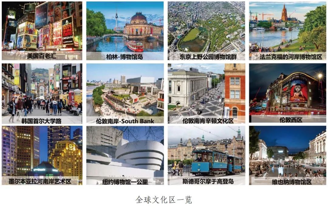 文化设施的集聚具有指数级的影响效应。因此,在城市中建设文化集聚区成为全球顶级城市的标配,如伦敦、华盛顿、纽约、柏林等城市都有蜚声海外的文化集聚区。在选址上,文化集聚区也自然选址在城市区位最为优越、内涵最为丰富的区域。