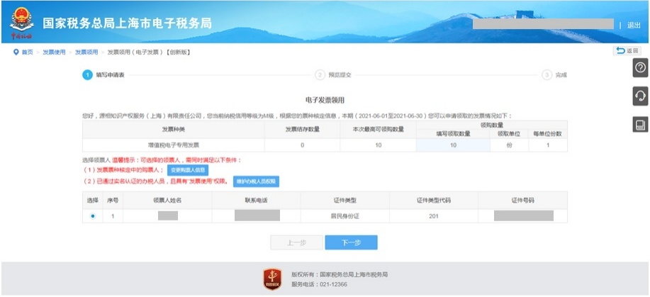 二、申领10份电子专用发票