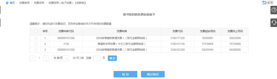 若存在需要验旧的发票则选择进行验旧,也可以跳过验旧。