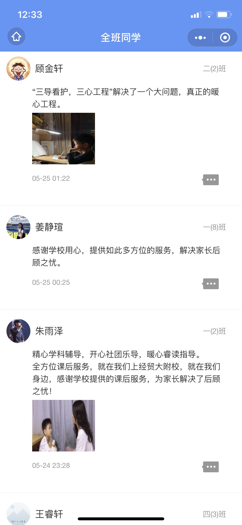 上经贸大附校的课后服务分为三个时段:班级看护、年级看护和校级看护,照顾到了家长们不同时间段接送孩子的需求;课后服务的形式丰富,内容多样,包括作业辅导、各类社团活动、阅读指导等。