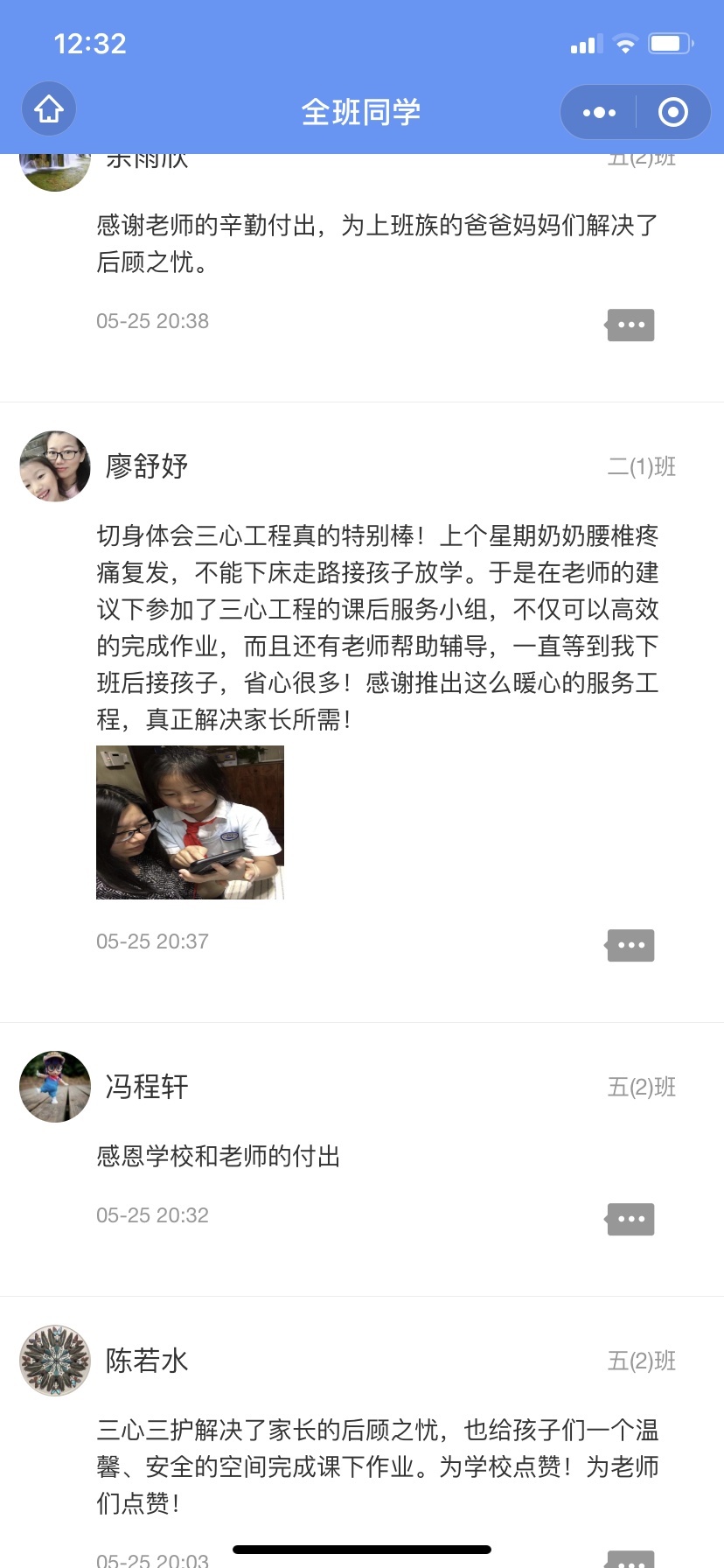 有家长说,课后服务就是家庭"502",家庭从此和谐了。以前总是因为孩子回家作业问题引发家庭矛盾,一家人常常吵得面红耳赤,下班后辅导孩子到半夜,孩子哭,家长愁。自从参加课后服务以来,孩子在学校认真写作业,回家后说说学校的趣事乐事,聊聊心中的小秘密,还有时间在饭后亲子散步,“三心工程”真的很放心、很温暖!