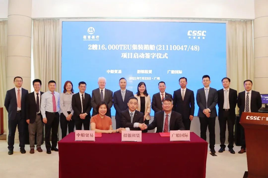 7月23日,招银金融租赁与中国船舶集团旗下广船国际有限公司(以下简称“广船国际”)及中国船舶工业贸易有限公司(以下简称“中船贸易”)在广州成功签约,启动2艘16000TEU集装箱船建造项目。