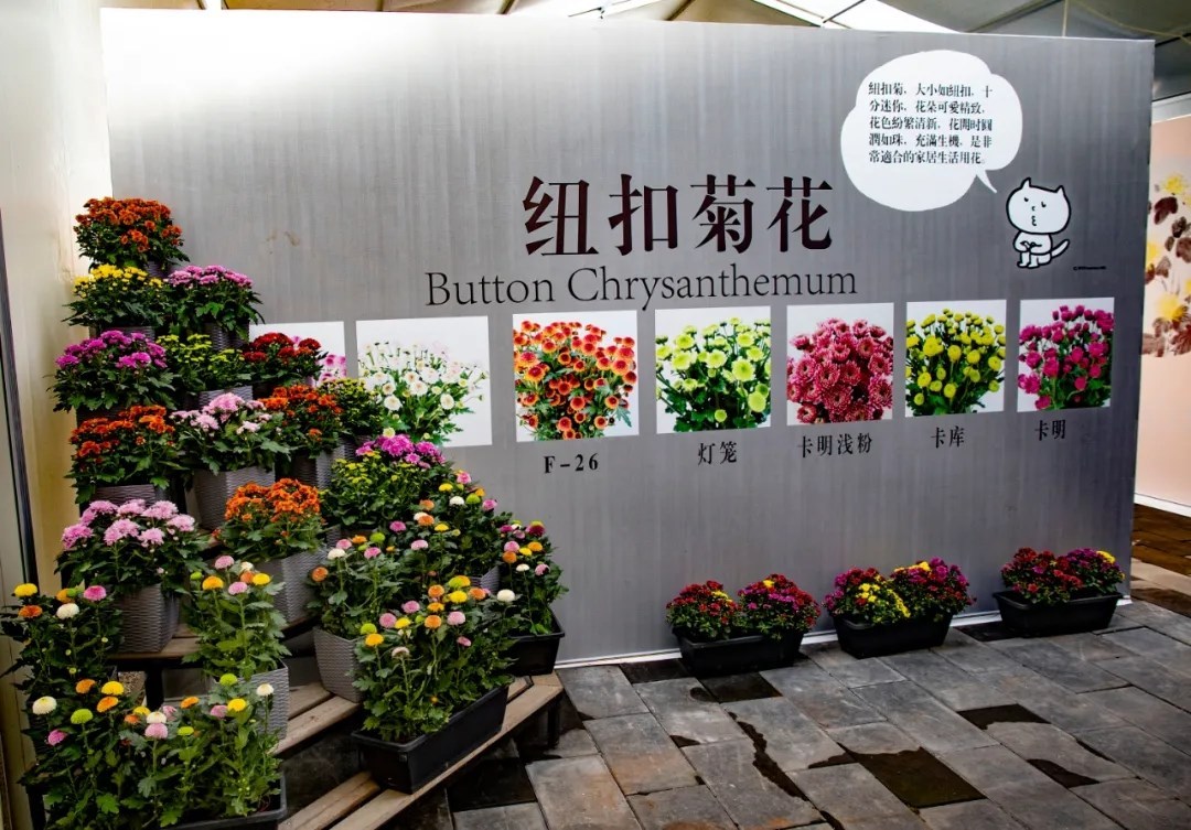 菊园位于南园紫藤长廊西南侧,走进菊花精品展示馆,便可以看到各式各样与众不同的菊花,五彩缤纷的彩色球菊、娇艳欲滴的纽扣菊花,还有明艳动人的多头菊、乒乓菊……作为花中的隐逸君子,在这里,菊花却展现出了丰富的现代感,令人眼前一亮。