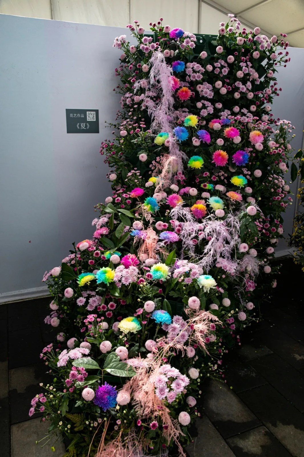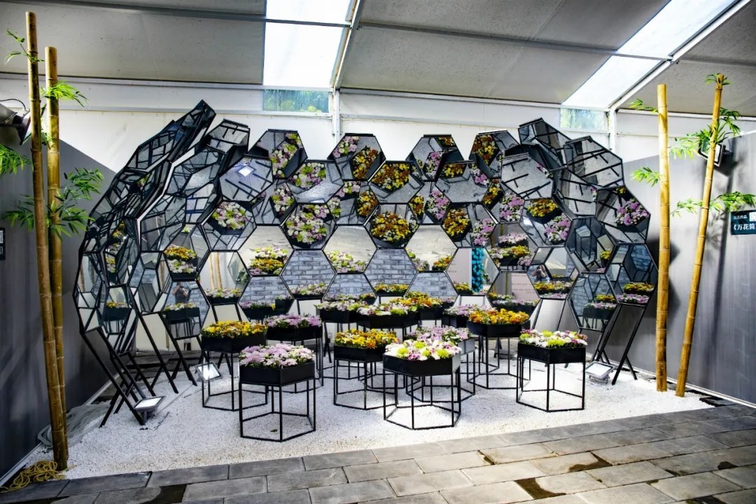 园中还有不少用镜面、竹子等元素结合多姿多彩的菊花打造而成的花艺作品,这些作品集中展示色彩丰富的精品菊花,让传统菊花的清雅、现代菊花的时尚感都得以体现。