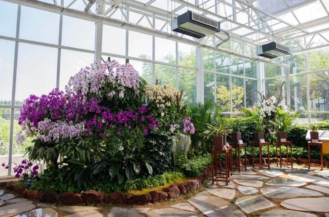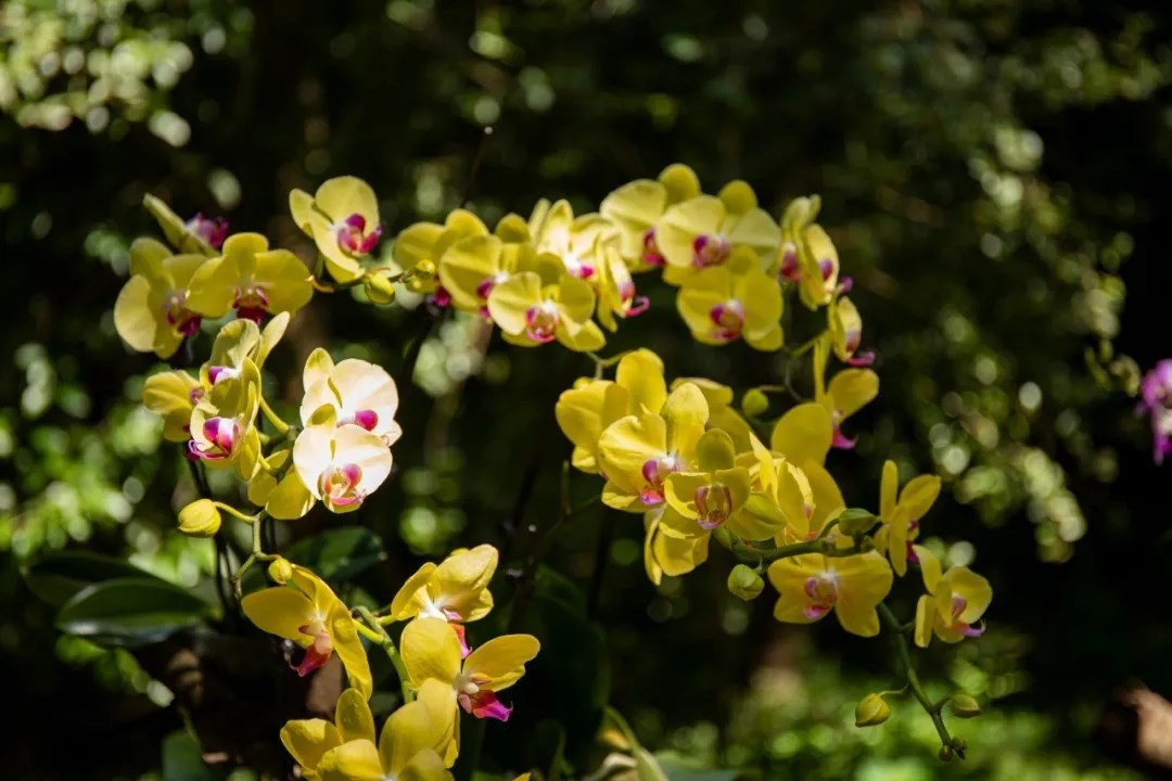 相比于兰花谷的野性,幽兰圃里的兰花则褪去了原本的素雅淡然,变得格外的娇艳欲滴、雍容华贵。在这里你不仅可以欣赏到名贵艳丽的兰花,还可以通过各种科普展示板和标牌,了解丰富的兰花文化知识,品味兰花的历史故事。
