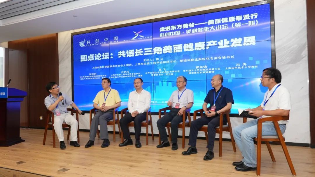 讲坛上,上海市生物工程学会荣誉理事长任瑞宝还围绕衰老精准干预与主动健康主题作报告,市生物工程学会副秘书长陈卫与来自长三角生物医药协同创新联盟、上海交通大学、华东理工大学、上海应用技术大学、东方美谷企业集团的专家、企业家围绕长三角美丽健康产业发展做了对话交流。